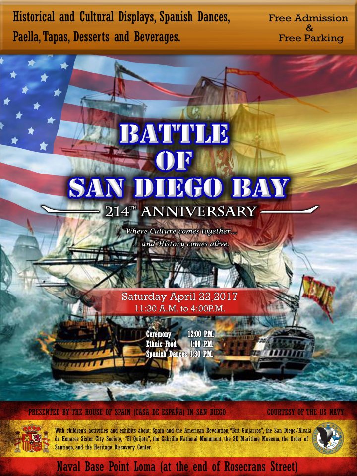 WHAT: House of Spain, Casa De España, will host the Battle of San Diego Bay 214th Anniversary Celebration through the courtesy of the U.S. Naval Base Point Loma. This event commemorates the only Pacific Coast, ship-to-shore battle between an American ship, the Lelia Byrd, and Spain’s “Fort Guijarros” located on Naval Base Point Loma.