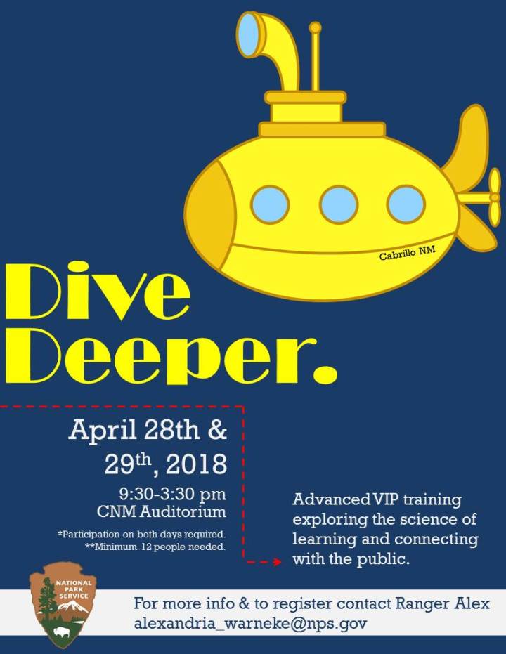 If you are a interested in learning about the science of learning and connecting with the public, join Ranger Alex for a program called Dive Deeper.