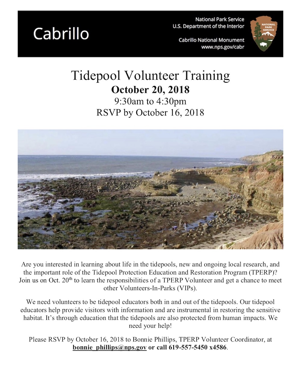 Cabrillo, TPERPTidepool Volunteer Training Share this: Click to share on Facebook (Opens in new window) Facebook Click to share on X (Opens in new window) X Click to email a link to a friend (Opens in new window) Email Click to print (Opens in new window) Print Like Loading... Related