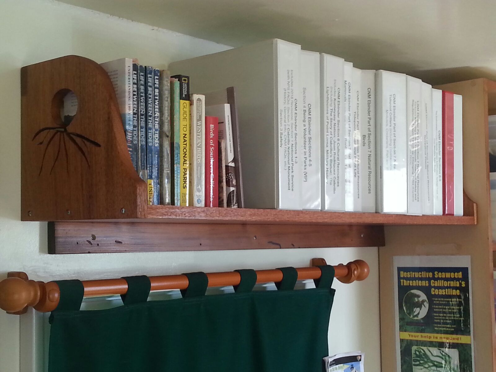Thanks to Keith Ballard and Mona Feliz, the ebinder volumes and books, which are used at the Education Table, have a new shelf in the Visitor Information Station at the tidepools.