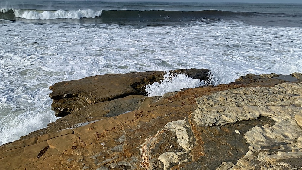 The arch at the entrance to the tidepools, by the large boulders, is getting weaker each day. The high tides routinely scrape the bottom of the arch.