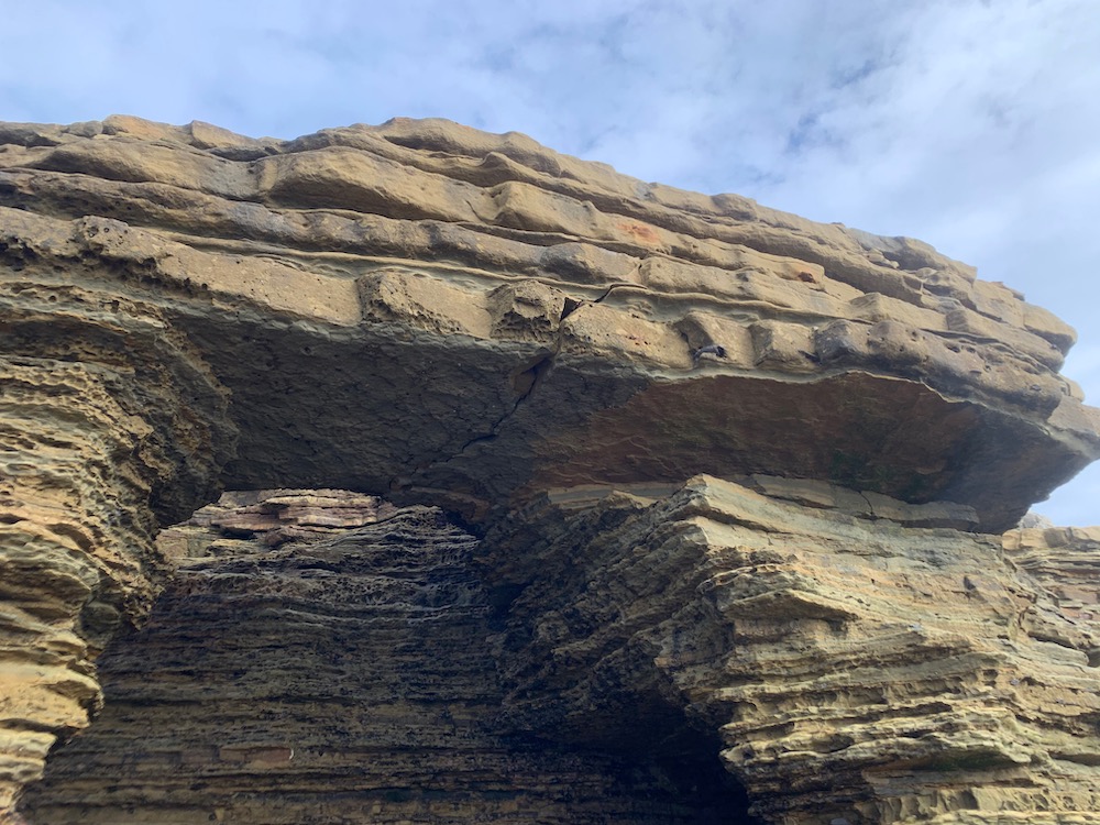 Looking a little closer, you can see how deep the crack goes, making the soft rock even more unstable.