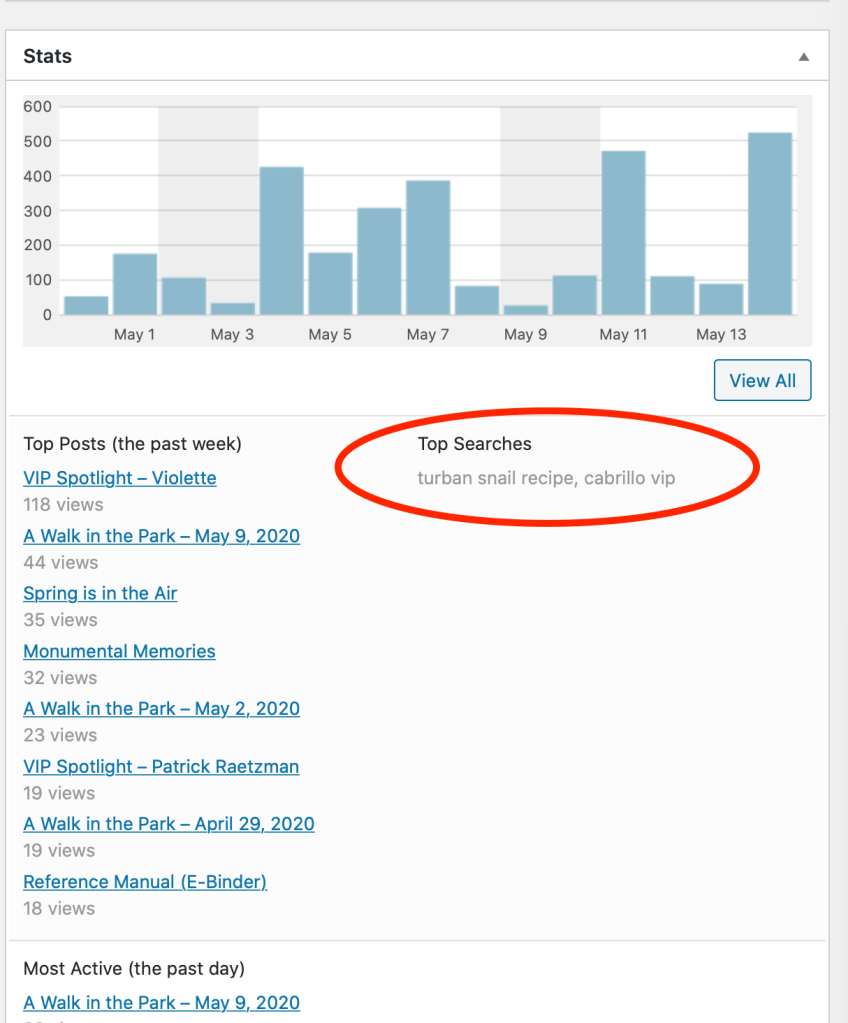 But don’t worry. After more investigation it turns out those search terms are what people are searching for in other places, such as Google, etc. It just so happens that the VIP Voice comes up in the search list when searching for turban snail recipes. Who knew? Our VIPs know that everything is protected at Cabrillo so the turban snails can relax.