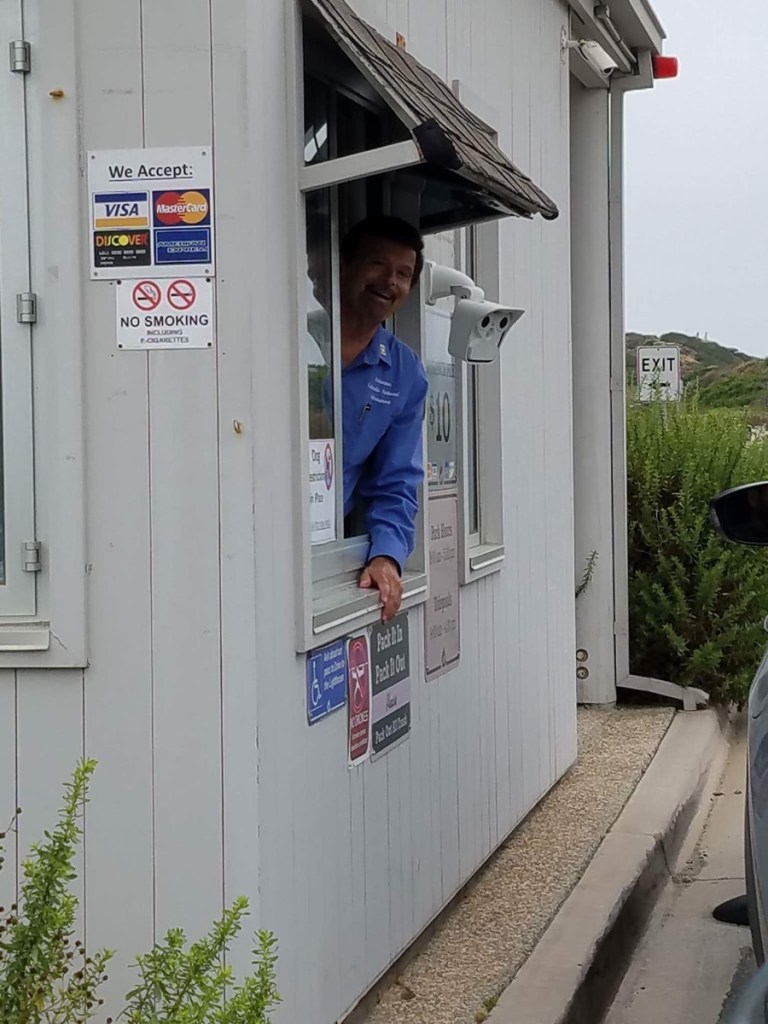 - PL: I report to the Entrance Station, about 20 minutes before my shift, and check with the rangers on any new developments or changes. Ranger Andrew has made a number of changes to be sure we’re fully in compliance with park service regulations. I then count the passes for which I will be responsible for, sign a log, and make sure there are enough of them to last during my time at the window. Then when the shift begins, it’s scratching my head to remember my password for the register, and then it’s off and running. I always keep in mind that for each visitor, it’s an initial contact with the park where for me it is just one of many. So, I try to stay cheerful with each one of them. End of shift I sign out on the register, organize the money, and place it in the safe. If it is a real busy day, I “walk the line” outside of the entrance booth to allow visitors to come into the park who have a variety of passes to move the line of cars more quickly.