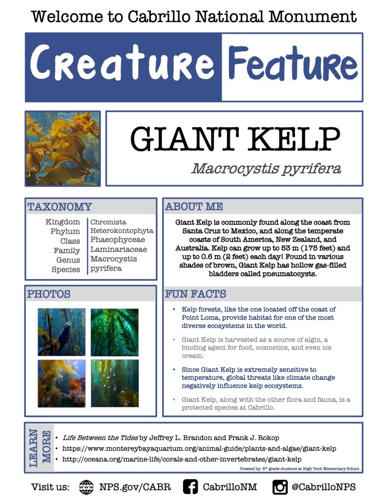 While the Education Table is closed, we still put out the Creature Feature sign for the visitors. This month’s Creature Feature is the Giant Kelp.