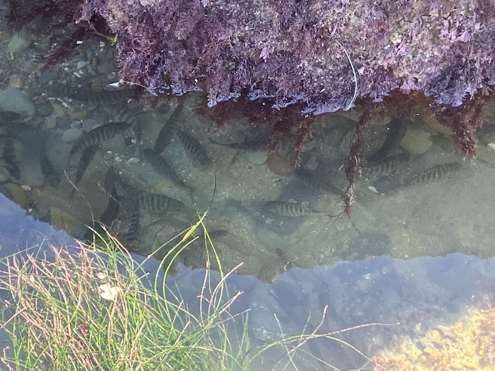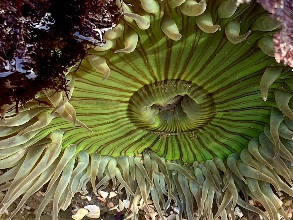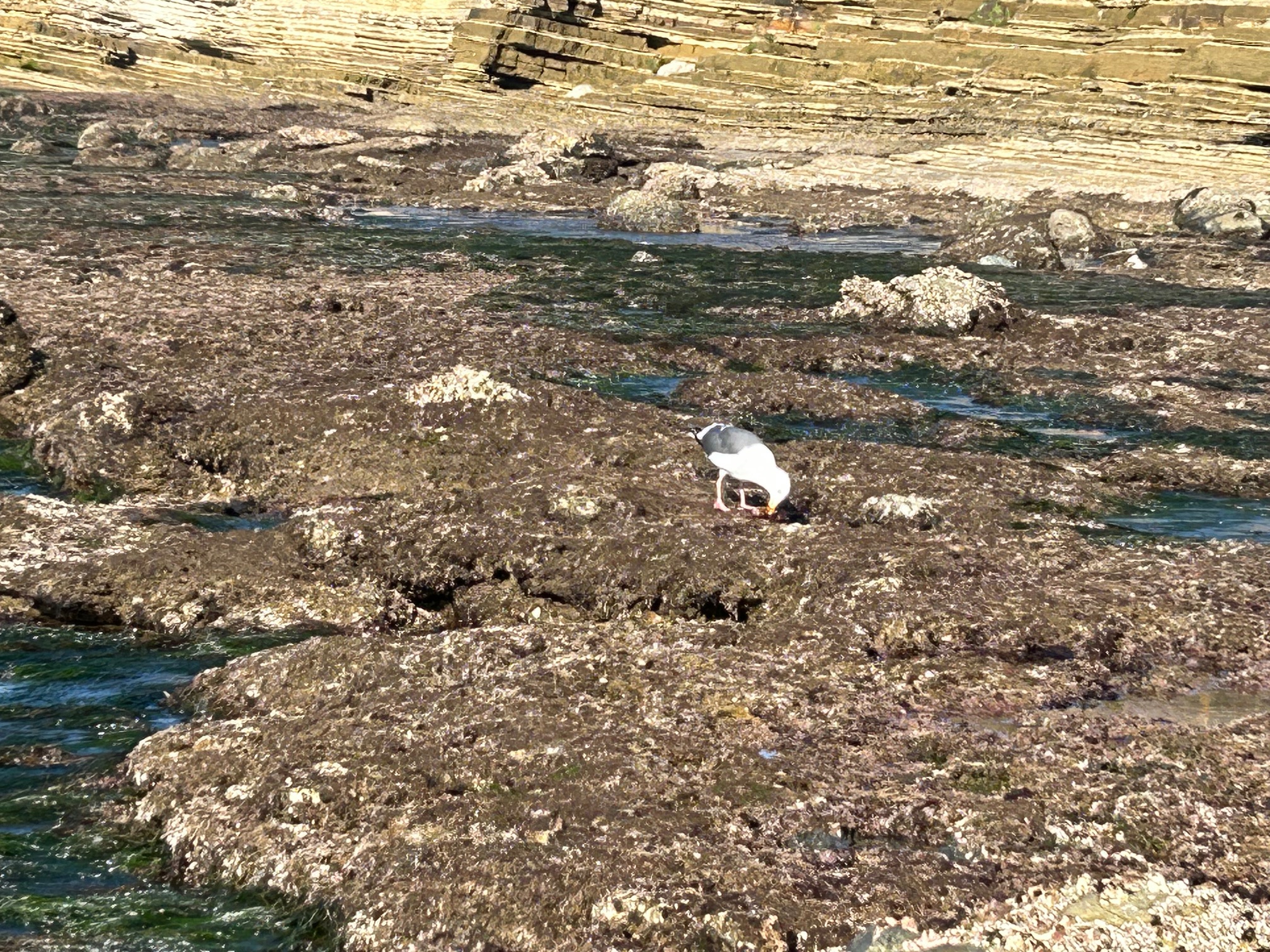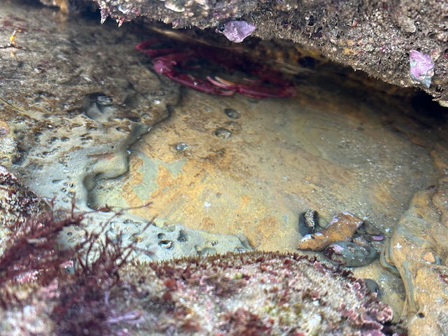 Here is a sampling of what our volunteers observed during this busy month — thank you to everyone who contributed. Along with the king tides, we also had Whale Watch Weekend. We have lots of Bat Stars, we have lots of Sea Hares, we have anemones, we have crabs, we have keyhole limpets, we have a major bluff collapse, we have a horse, we even have photos from Whale Watch Weekend! Remember to send in your photos; we truly appreciate sharing them with everyone.