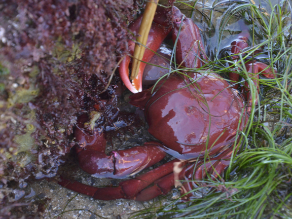 Natural History: This is a herbivore feeding on brown algae. Females can produce offspring every 30 days and can hold as many as 61,000 developing eggs. It may be worth warning folks about those claws. Look how beefy they are. This is one of the few organisms at Cabrillo that could really hurt someone in the intertidal. If one of those things latches on to someone’s fingers, it could mean an ER visit. Fortunately, they are slow. I would worry more about rattlesnakes.