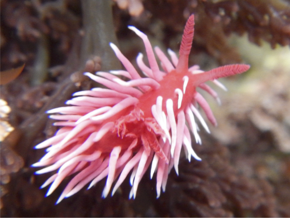 Their scientific name, Nudibranchia, means naked gills, and describes the feathery gills and horns that most wear on their backs.