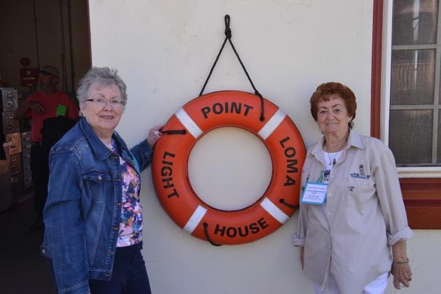 Adult children of former Point Loma Lighthouse keeper James Dudley, Joan Dudley Eayrs (left) and Patricia Dudley Goulart, stand at the station’s life ring. The two are among nine other former keepers’ kids who attended the 125th anniversary celebration of the change of operation from Old Point Loma Lighthouse to the new, lower station, Point Loma Lighthouse. We have these girls to thank for so much of the World War II history of the lower light station.