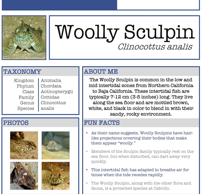This month’s Creature Feature at the Education Table is the Woolly Sculpin. Continue reading Creature Feature – Woolly Sculpin