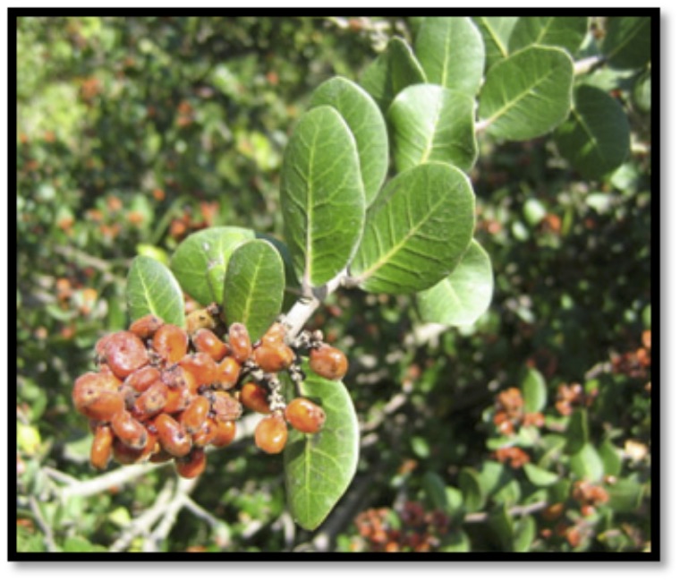 Lemonade berry fruit was collected, pounded, dried, sorted, and eaten. It made a refreshing drink when the berries were soaked in water. The bark was brewed into a tea for drinking following childbirth.