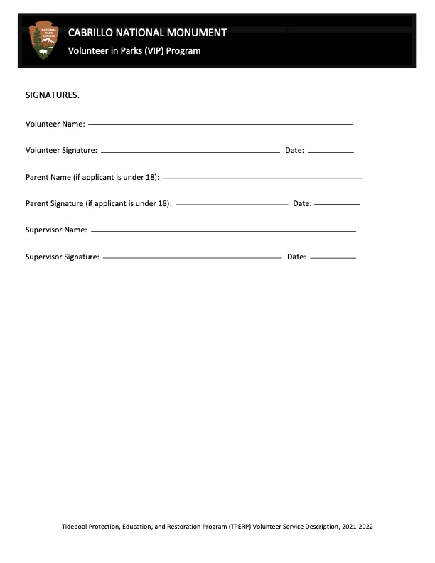 Tidepool Protection, Education, and Restoration Program (TPERP) Volunteer Service Description